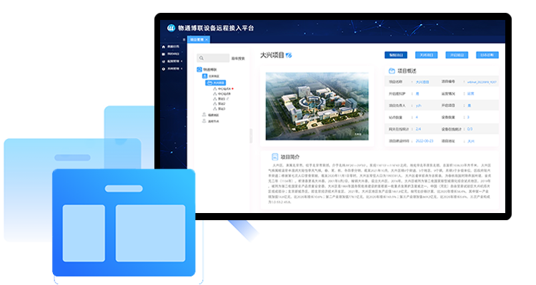 實現(xiàn)對實時監(jiān)控項目的管理,包含項目的名稱,編號,運營情況,負責(zé)人,站點數(shù)量,設(shè)備數(shù)量,在線統(tǒng)計,項目介紹進行管理;維護項目的在線通道,查看項目通道的日志。