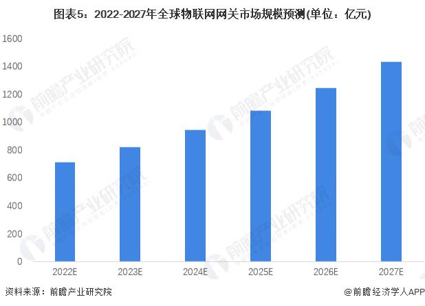 隨著全球物聯(lián)網(wǎng)行業(yè)的發(fā)展,未來全球物聯(lián)網(wǎng)網(wǎng)關行業(yè)將有進一步的增長,根據(jù)全球區(qū)域市場的情況來看,目前亞洲地區(qū)的增速是全球增速最快的地區(qū),中國物聯(lián)網(wǎng)網(wǎng)關行業(yè)的增速為 18%。根據(jù)預測,2027 年全球物聯(lián)網(wǎng)網(wǎng)關行業(yè)市場規(guī)模將達到 1434 億元。