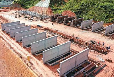 湖南省通道侗族自治縣積極引進具備電力儲存、平衡電力系統的“虛擬電廠”項目,統籌推進能源安全與轉型。圖為8月10日,在該縣首座“虛擬電廠”施工現場,工人們正加班加點修建儲電電池艙。 李尚引攝(人民視覺)