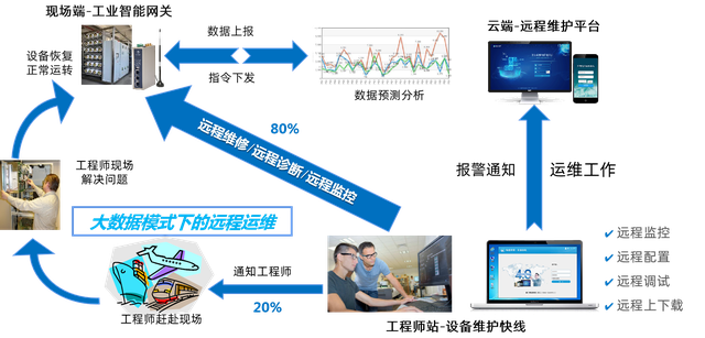 借助物聯網網關可以開通臨時的遠程維護通道,工程師就能遠程進行程序上下載,也能進行調試與升級,減少設備故障帶來的損失與浪費。