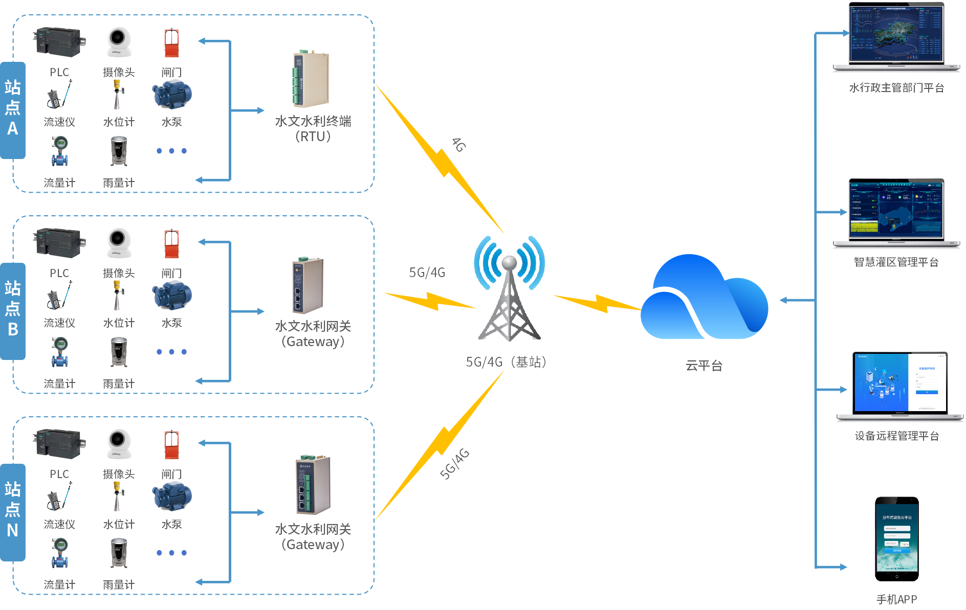 實現對水泵、閘門等設備PLC的遠程控制,結合實時數據和實時視頻,合理調整閘門狀態,增強工作靈活性,實現無人值守。
