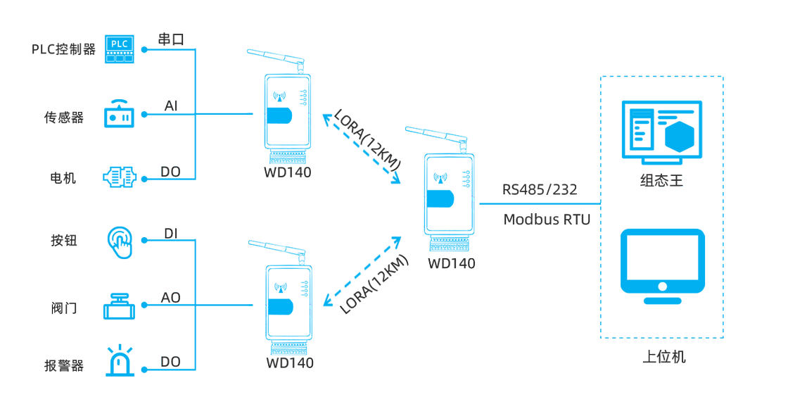 | 示例 | WD140-LM0211-485(國(guó)內(nèi)頻段:410~493MHz LORA,485串口) WD140-GM0211-485(國(guó)內(nèi)頻段:4G CAT1,485串口) WD140-LM0211-485(國(guó)內(nèi)頻段:850~930MHz,22dbm,485串口) |