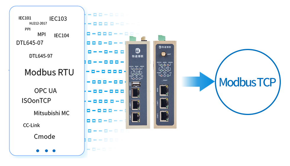 支持實現PLC/DTL645/IEC101/IEC104/IEC103等協議轉Modbus TCP